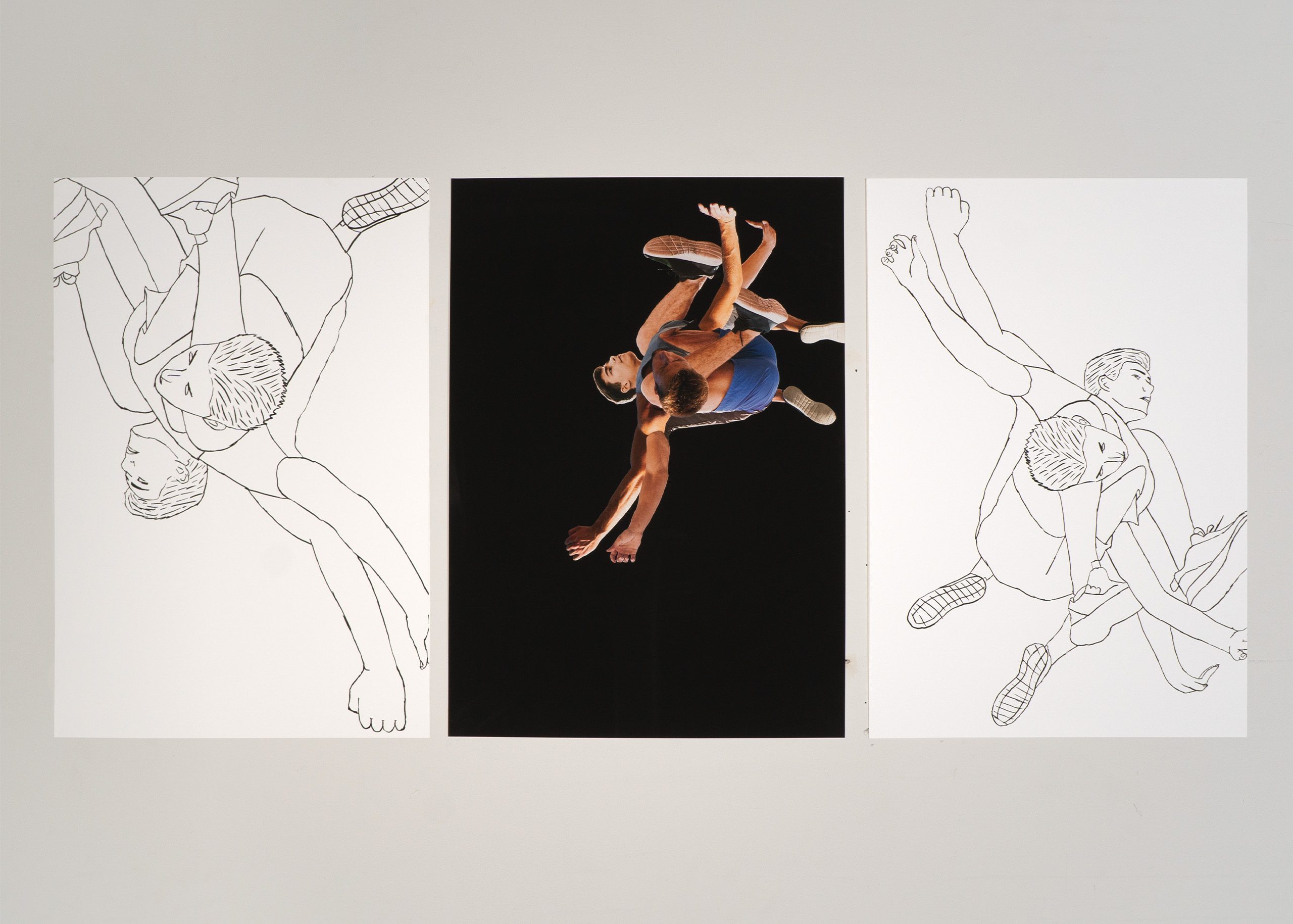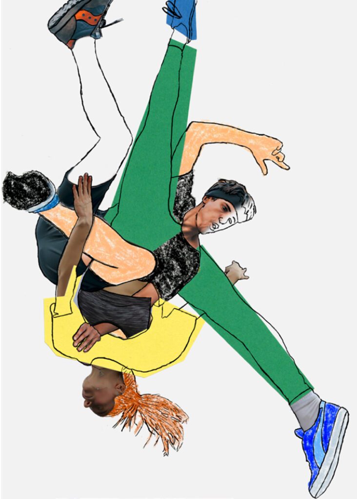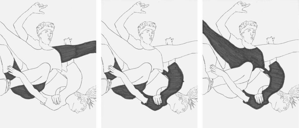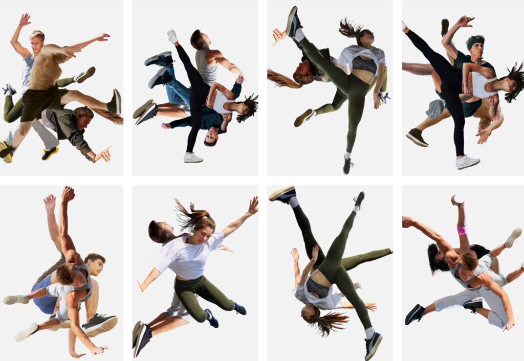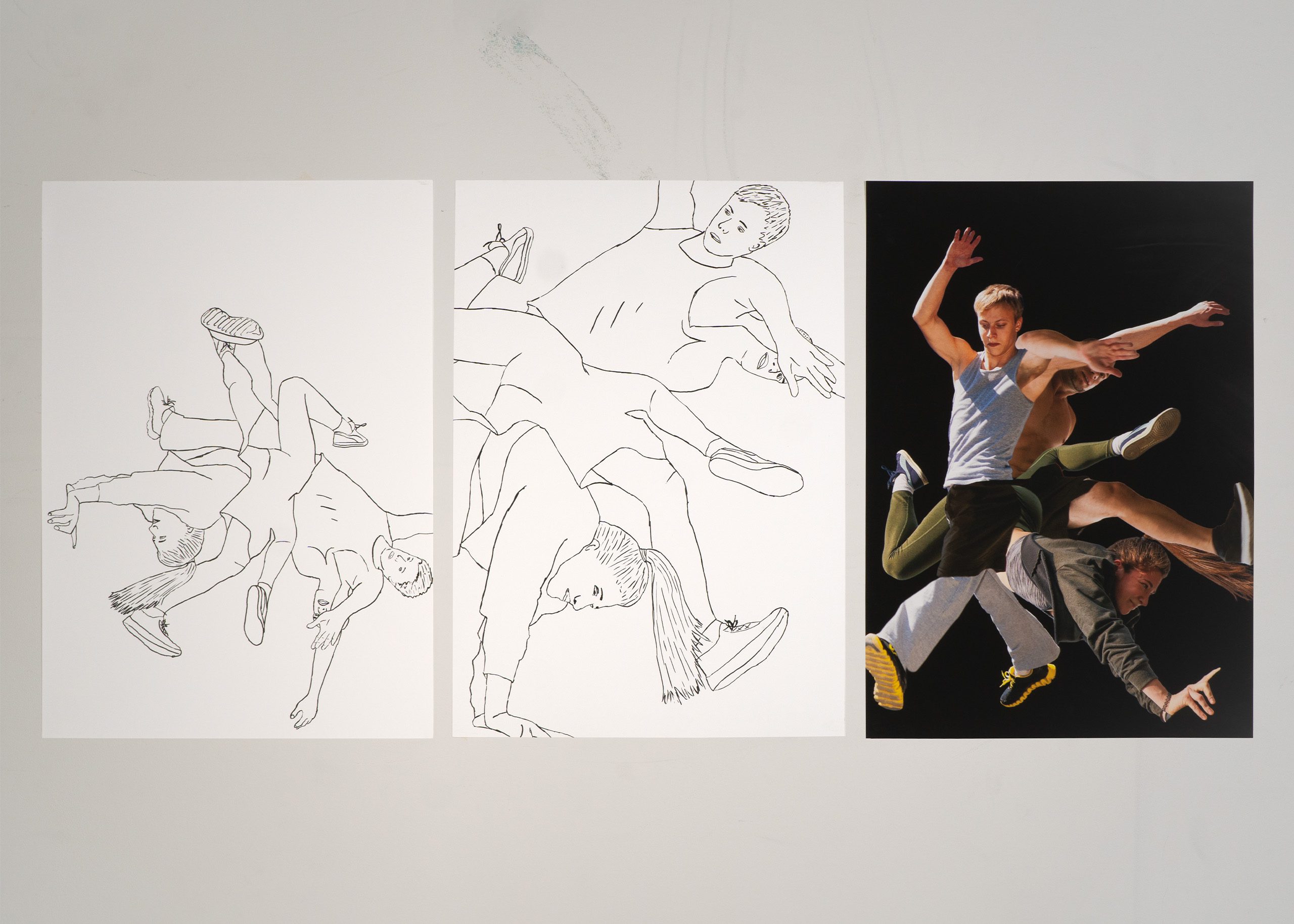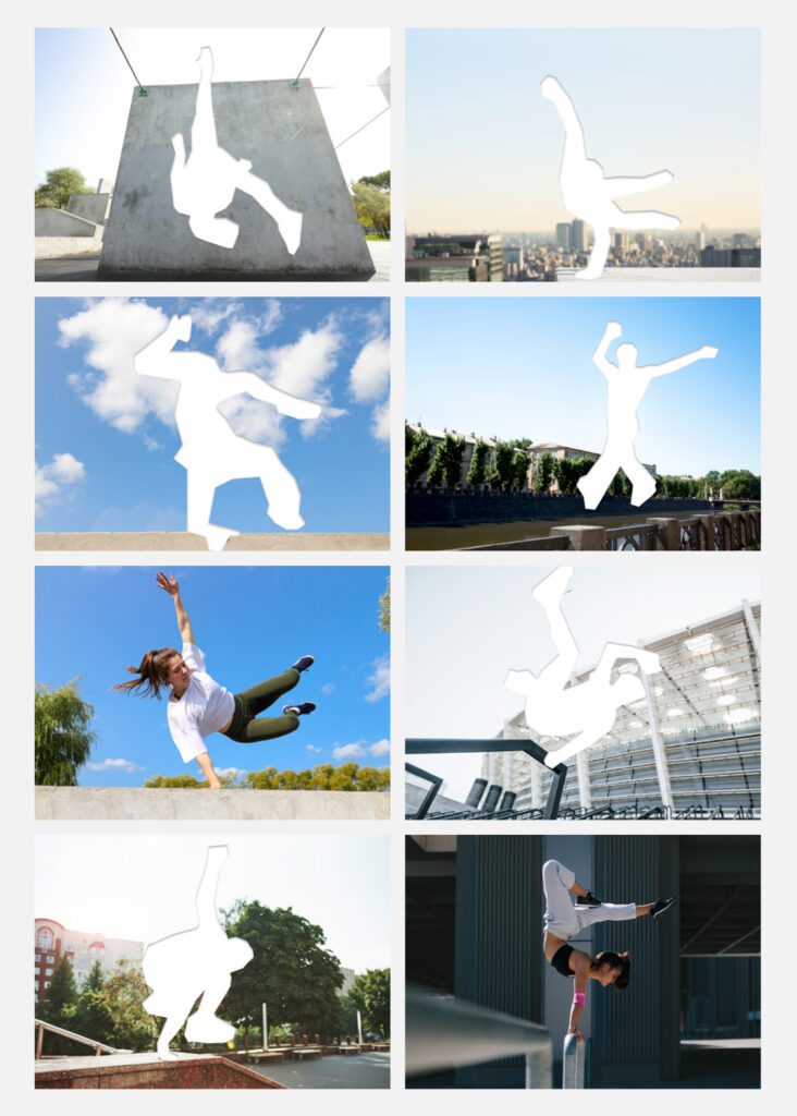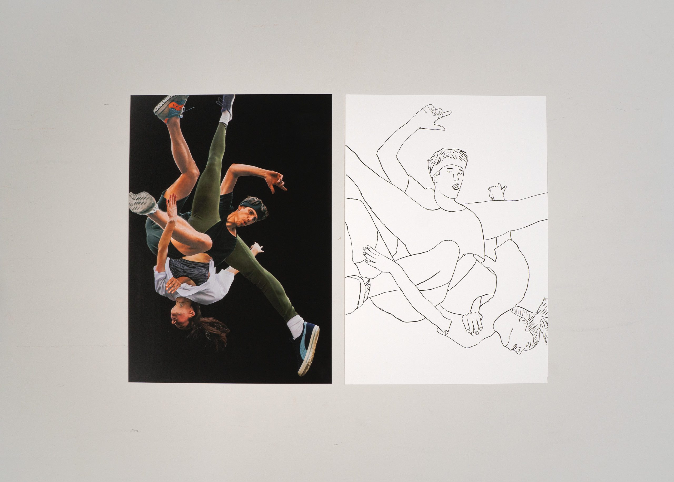 Zum Thema Talking Bodies habe ich nach verschiedenen Erprobungen das Phänomen der Körperverschmelzungen entdeckt. Mir ist aufgefallen, dass beim Breakdance und Parkour sehr interessante Körperhaltungen entstehen, welche man miteinander kombinieren kann. Es interessierte mich herauszufinden, wann die Körper sich visuell ineinander auflösen und wann sie sich voneinander trennen und eigenständig wirken. Dieses Spiel erschafft das Gefühl eines Tanzes in der Serie.