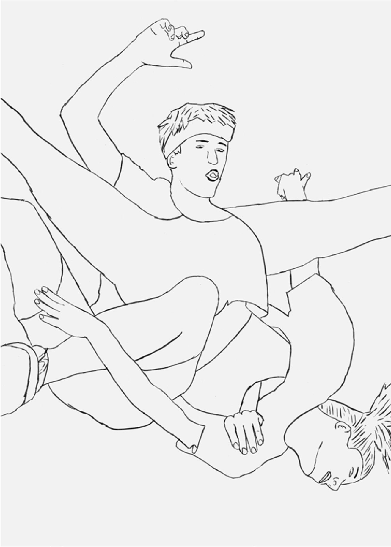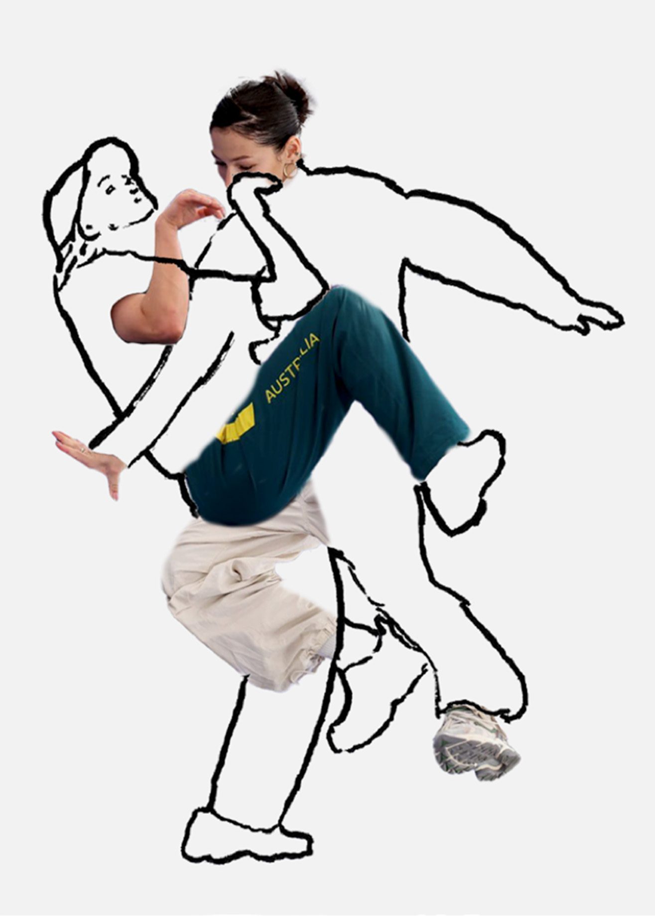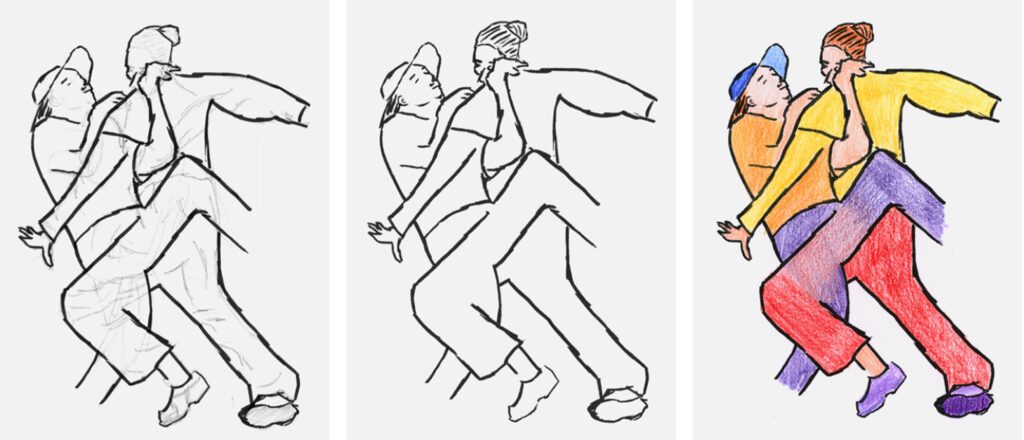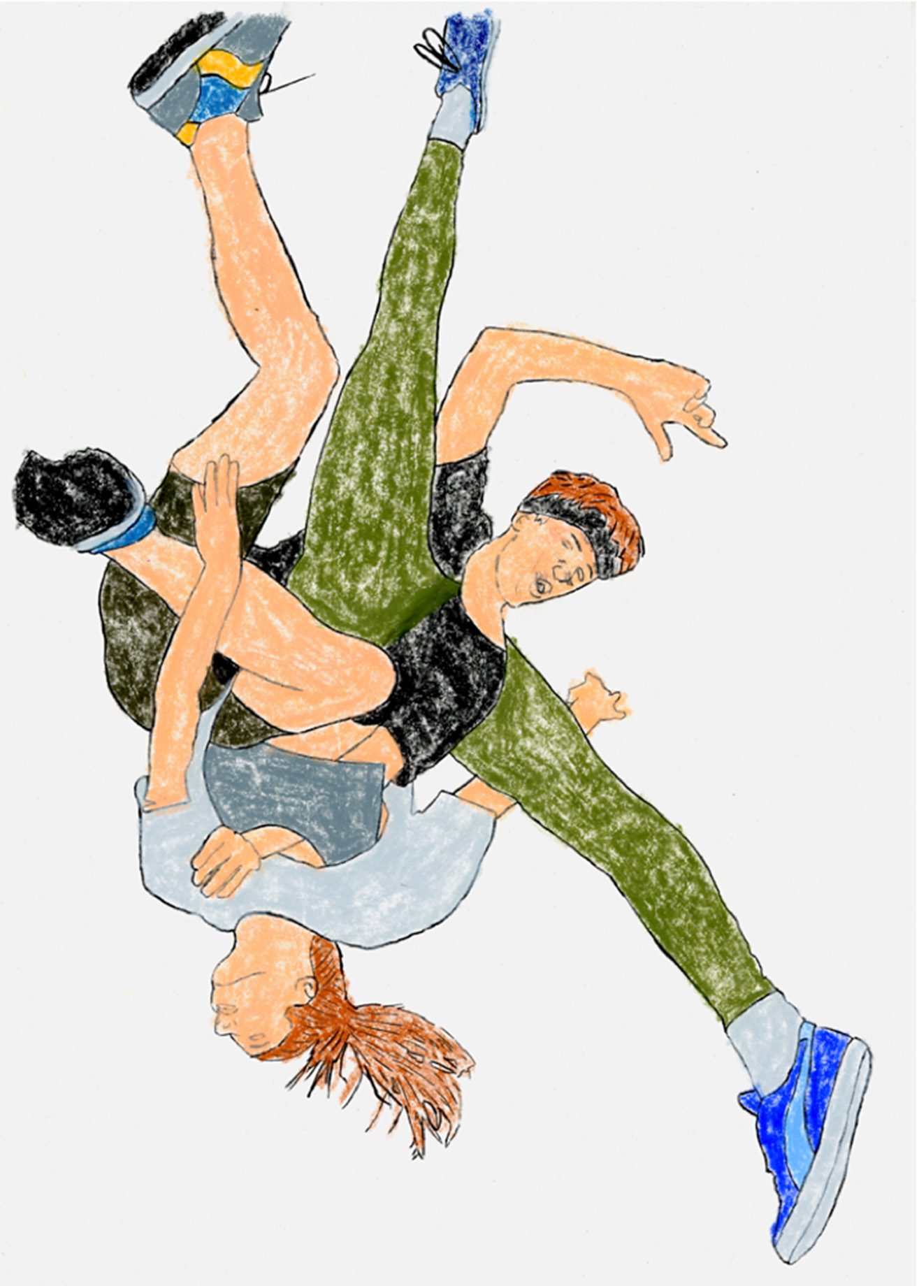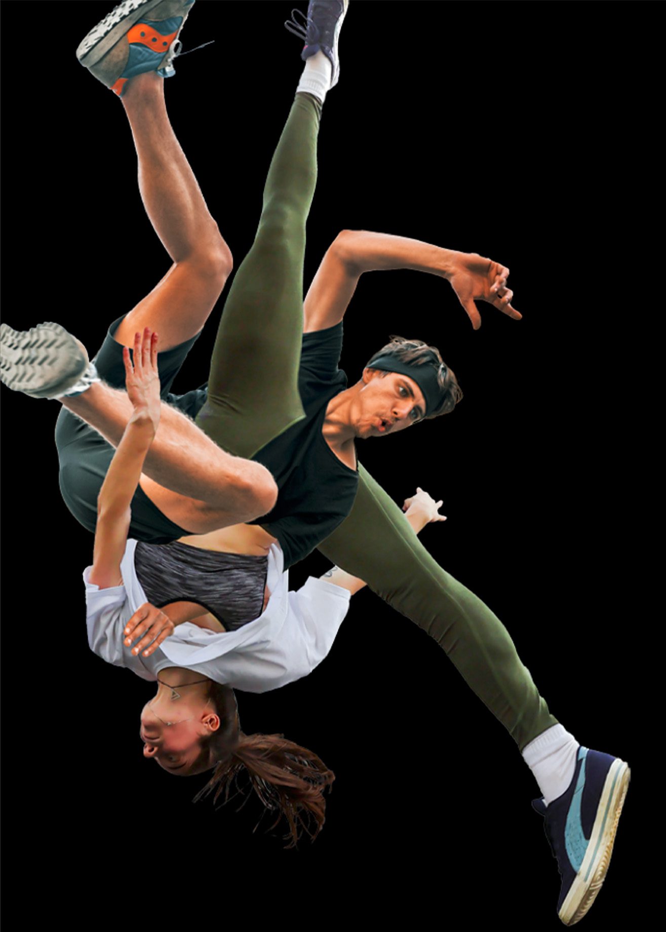 Zum Thema Talking Bodies habe ich nach verschiedenen Erprobungen das Phänomen der Körperverschmelzungen entdeckt. Mir ist aufgefallen, dass beim Breakdance und Parkour sehr interessante Körperhaltungen entstehen, welche man miteinander kombinieren kann. Es interessierte mich herauszufinden, wann die Körper sich visuell ineinander auflösen und wann sie sich voneinander trennen und eigenständig wirken. Dieses Spiel erschafft das Gefühl eines Tanzes in der Serie.